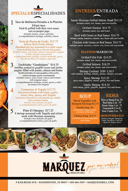 Grill, chill, and celebrate the sizzling flavors of Jalisco at Marquez Mexican Grill.
